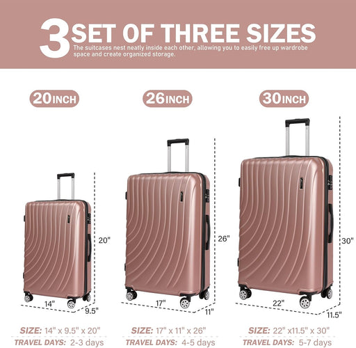 L-948A-3-pc(20'26"30") PC Luggage-Rose Gold(TSA Lock)